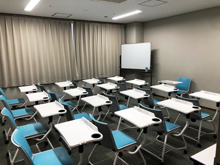 | 設備等 | (無料)*部屋固有の附属設備 演台、ホワイトボード、自立型スクリーン(80インチ)、 有線LAN回線、 長机(8)、 イス(24)、案内板 (有料)共通の附属設備を利用 プロジェクターなど共通の附属設備はこちら をご覧ください。 |